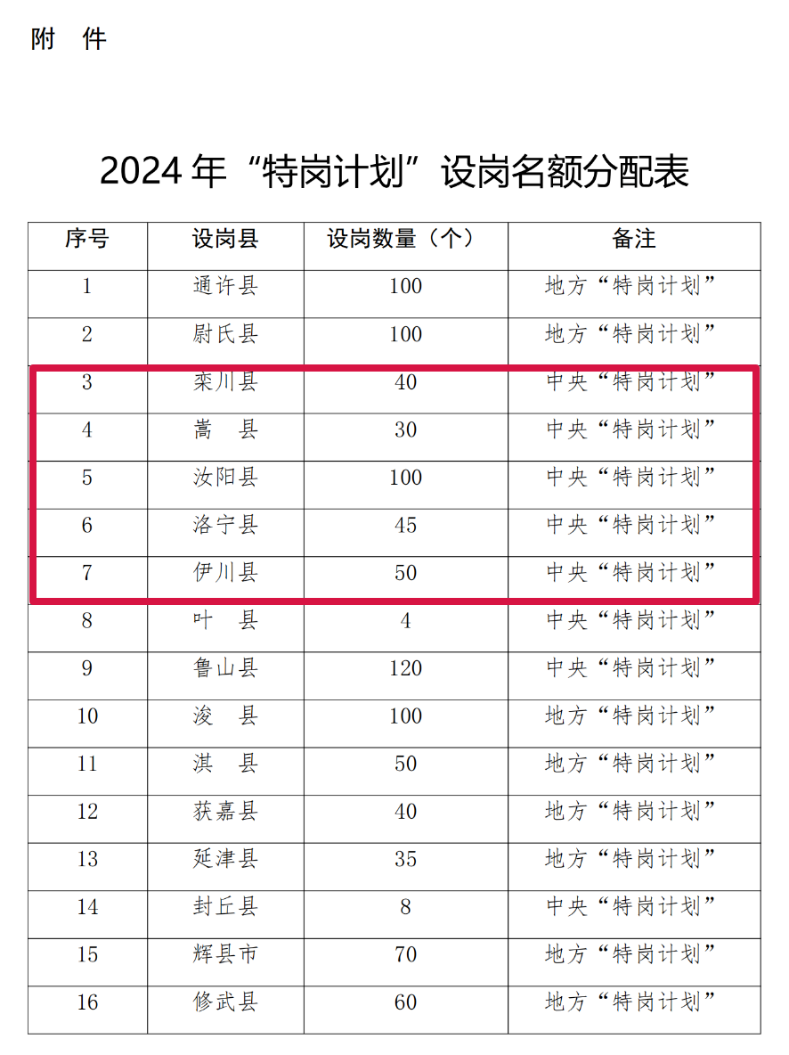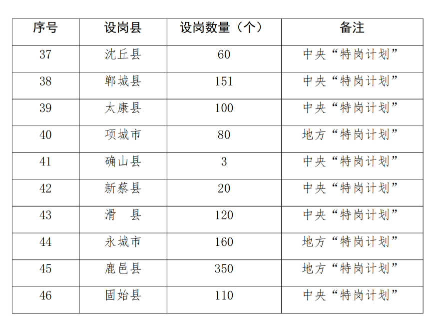 15.请各地紧密结合乡村学校实际需求,严格按照2024年“特岗计划”实施政策精神,抓紧拟定分学段、分学科招聘岗位,于6月14日前提交至河南省特岗教师招聘管理系统。