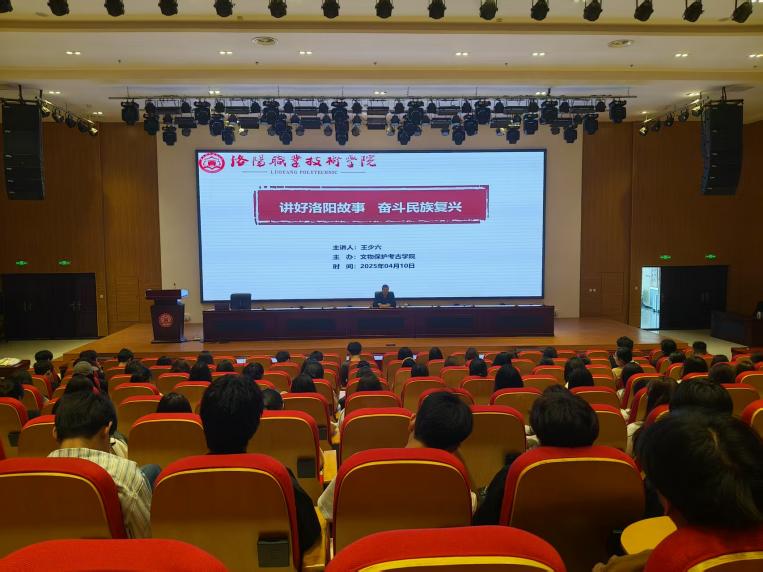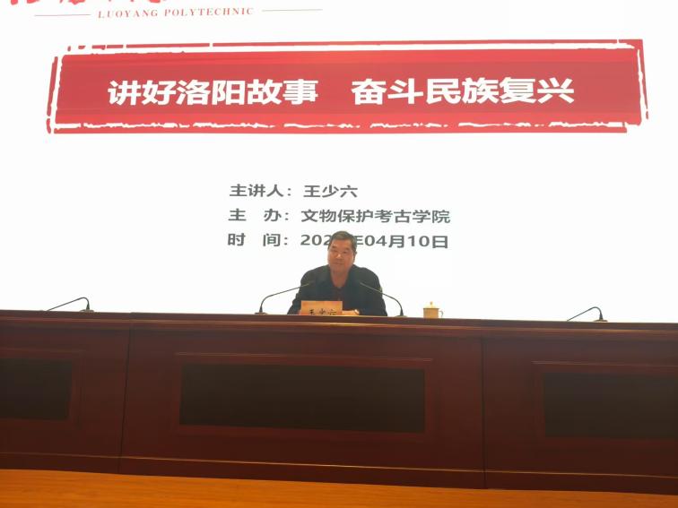 4月10日下午,洛阳职业技术学院关工委在大学生活动中心一楼学术报告厅举办“讲好洛阳故事,奋斗民族复兴”主题教育讲座,特邀“五老”人员王少六担任主讲,洛职文物保护考古学院青年师生代表近200人参加。