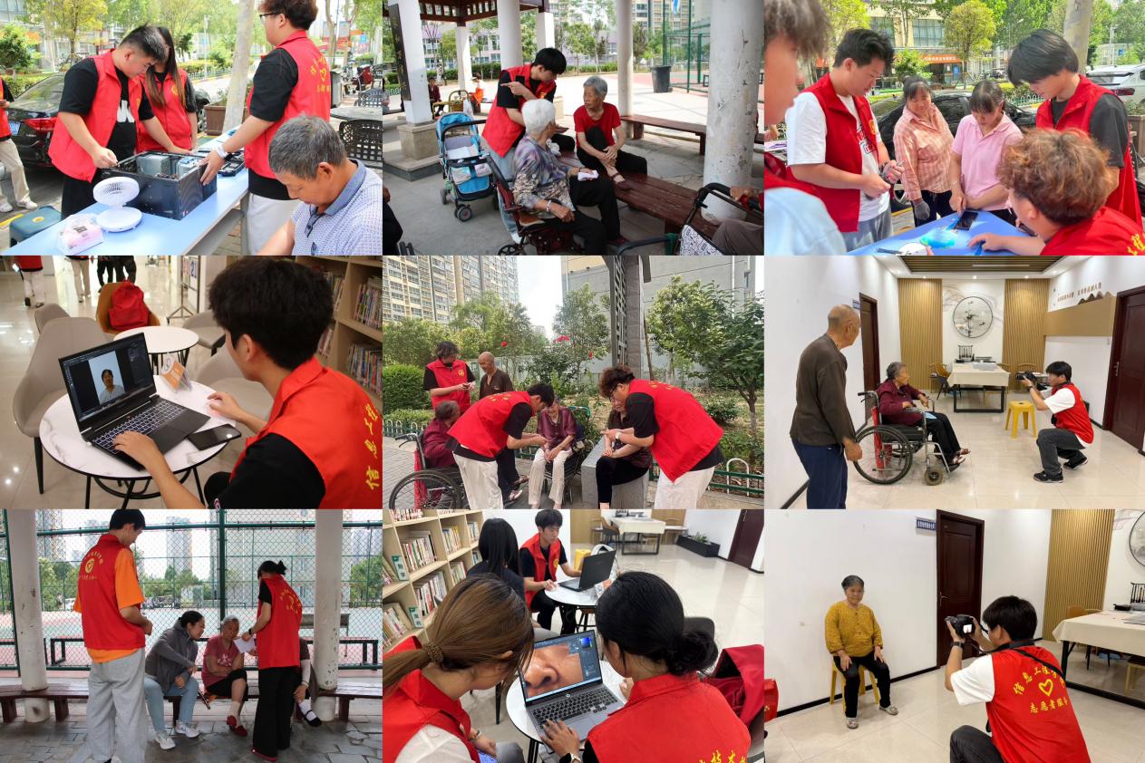 师生志愿者充分发挥专业特长,为社区居民带来形式多样的服务。在防诈骗知识宣讲区,志愿者们结合端午期间常见的诈骗案例,用通俗易懂的语言向居民普及反诈知识,守护大家的 “钱袋子”;技术服务小组穿梭在社区的各个角落,上门为居民维修电脑、打印机,解决实际难题;最热闹的当数AI知识小课堂,志愿者们手把手教老人们用AI软件美化照片,借助智能语音助手查天气、学菜谱、了解养生知识,助力老人们跨越 “数字鸿沟”。此外,志愿者还为老人们拍摄一寸证件照,并运用专业修图软件精心处理,定格老人们幸福的笑容。